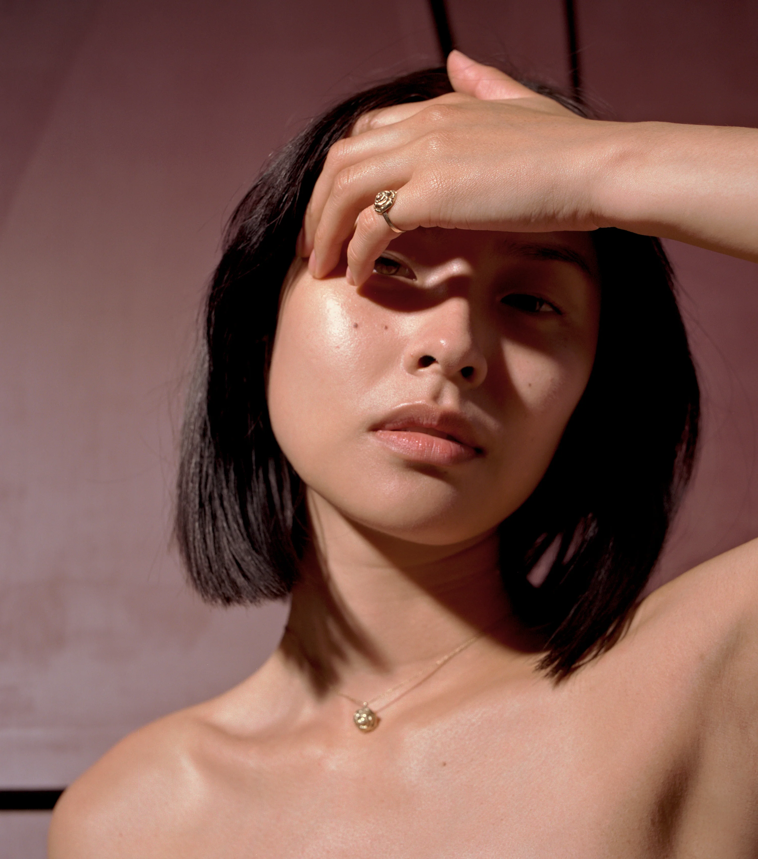 necklace handmade in recycled 14k yellow gold with a rose bud