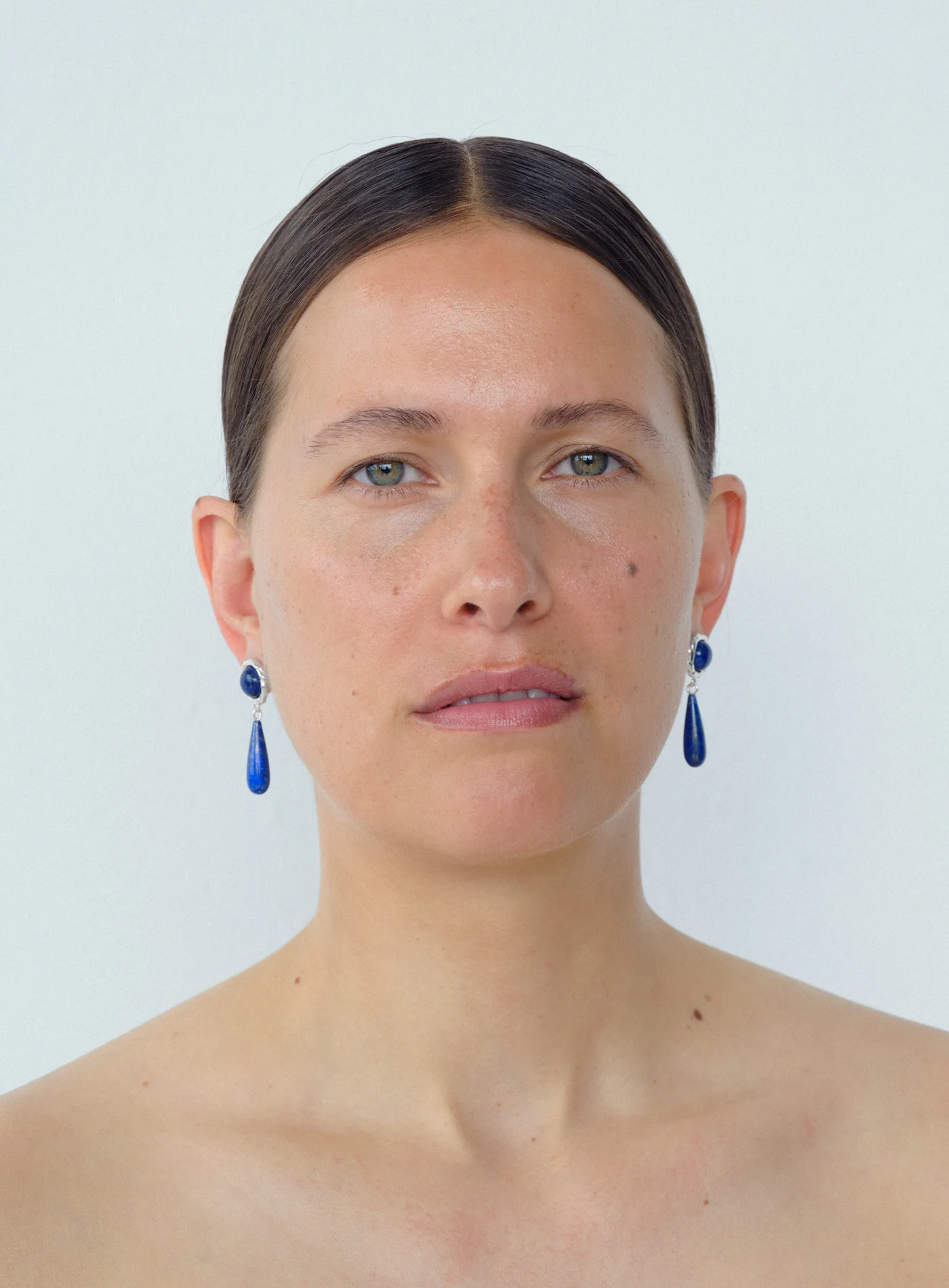 A pair of handmade earrings in recycled sterling silver with lapis lazuli stones