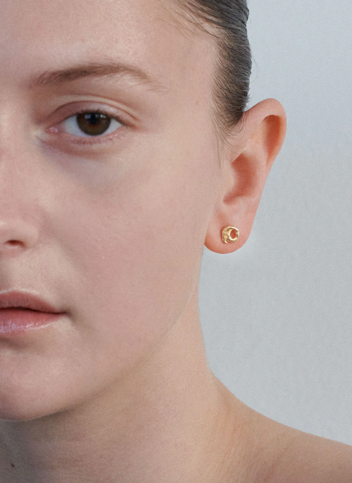 earring handmade in recycled 14k yellow gold shaped like a small fern branch