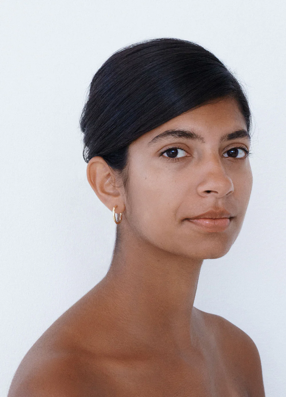 hoop handmade in recycled 14k yellow gold in our signature twisted design