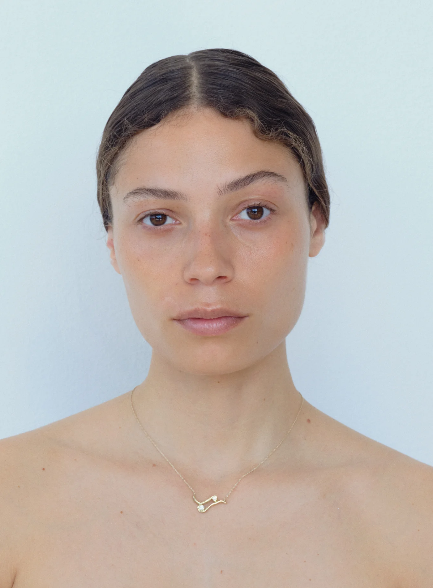 necklace handmade in recycled 14k yellow gold adorned with two top wesselton vvs diamonds with a combined weight of 0.17 ct.