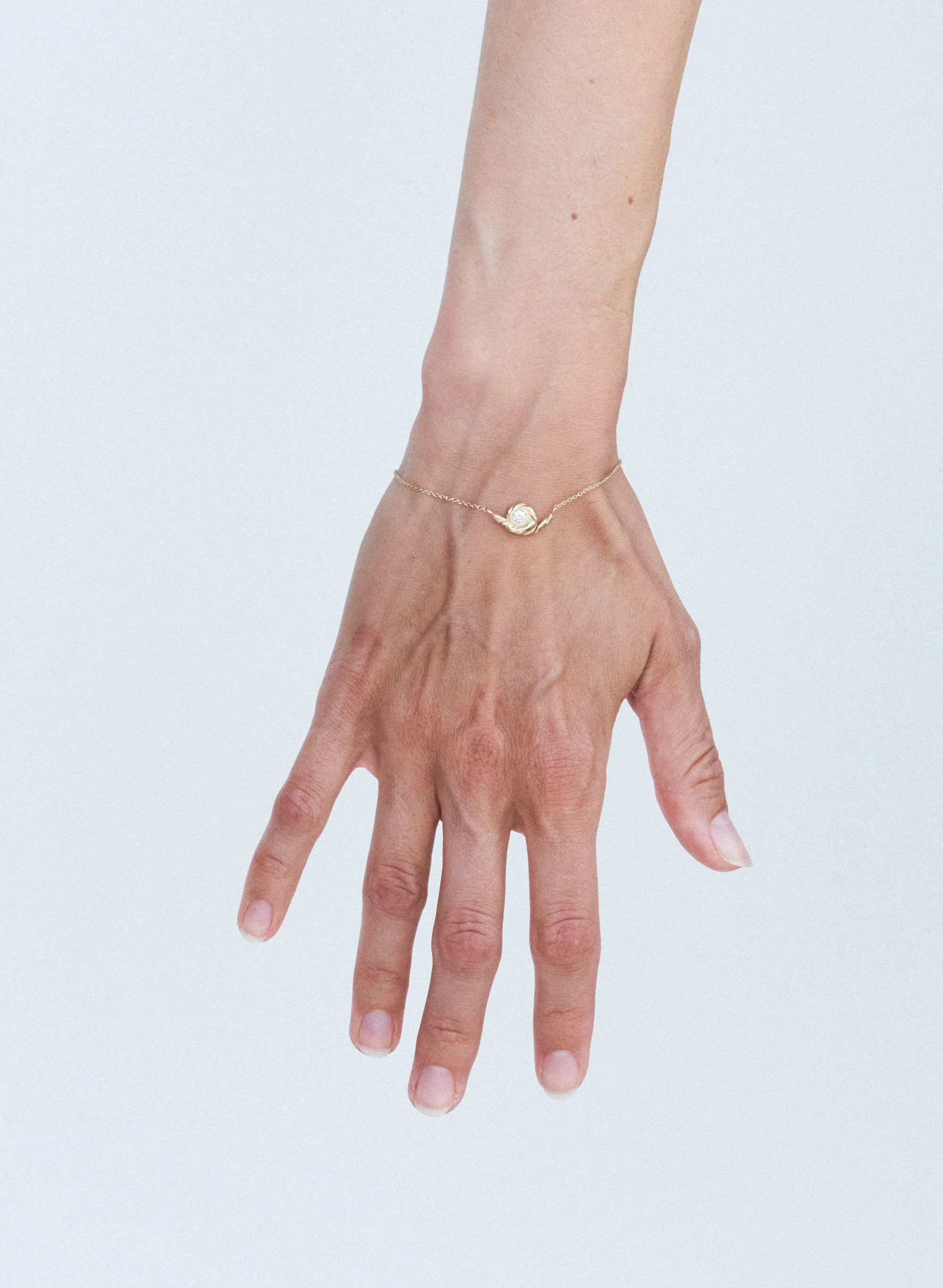 bracelet handmade in recycled 14k yellow gold with our classic twig shape featuring a 0.14 ct. top wesselton vvs diamond